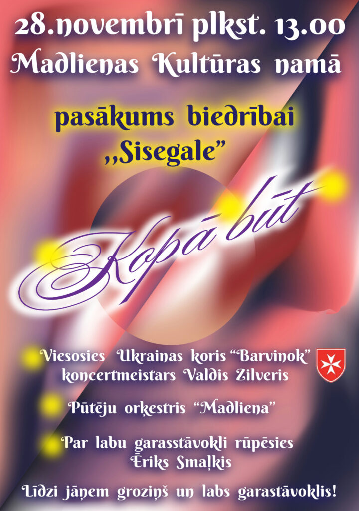 28. novembrī mūsu kori gaida īpašs notikums, esam saņēmuši ielūgumu no Madlienas pensionāru biedrības “Sisegale”. Dziedāsim gan latviski, gan ukraiņu valodā, daloties ar dziesmu siltumu.