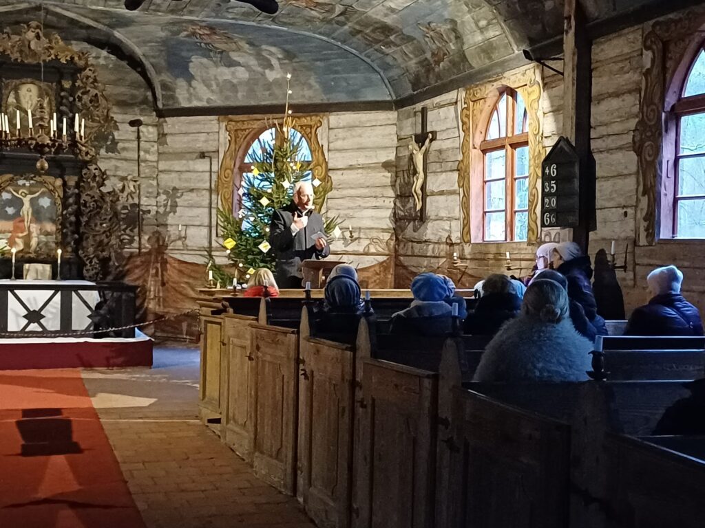 Pasākums iesākās ar nelielu svētbrīdi Usmas koka baznīca, kur dalībnieki dziedāja dziesmu “Klusa nakts, svēta nakts” latviešu valodā, kopīgi lūdzās par mieru pasaulē un Dieva svētību nākamajam gadam. Šis brīdis daudziem kļuva par dziļi personisku un aizkustinošu pieredzi, kas stiprināja iekšējo mieru un cerību.