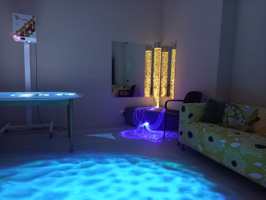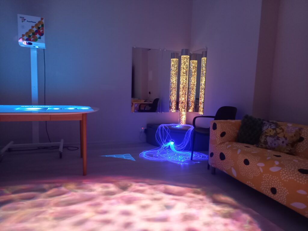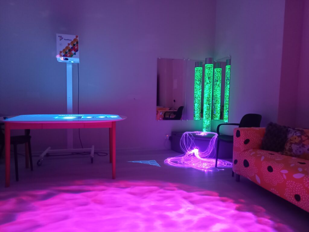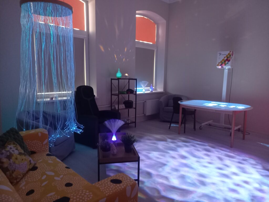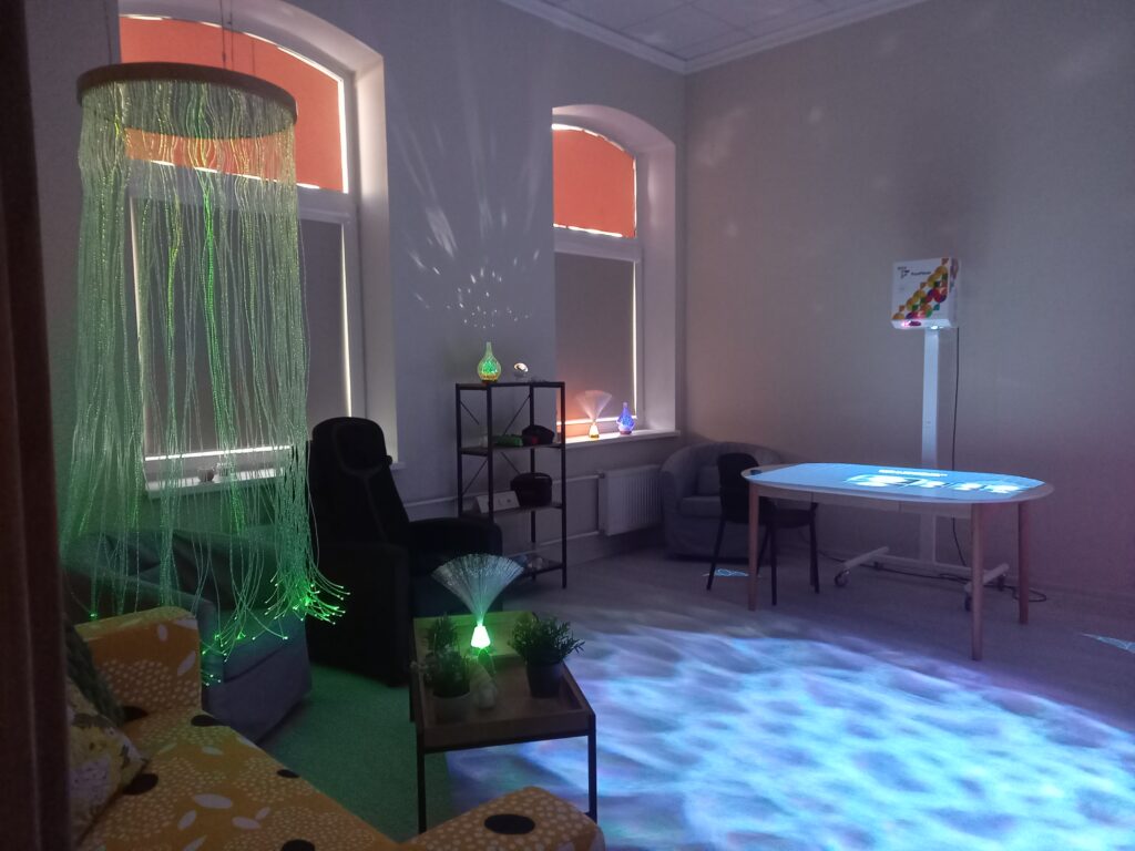 - multisensorā telpa, kur ar gaismas, skaņas, smaržas un pieskāriena palīdzību tiek stimulētas maņas un veicināta relaksācija;