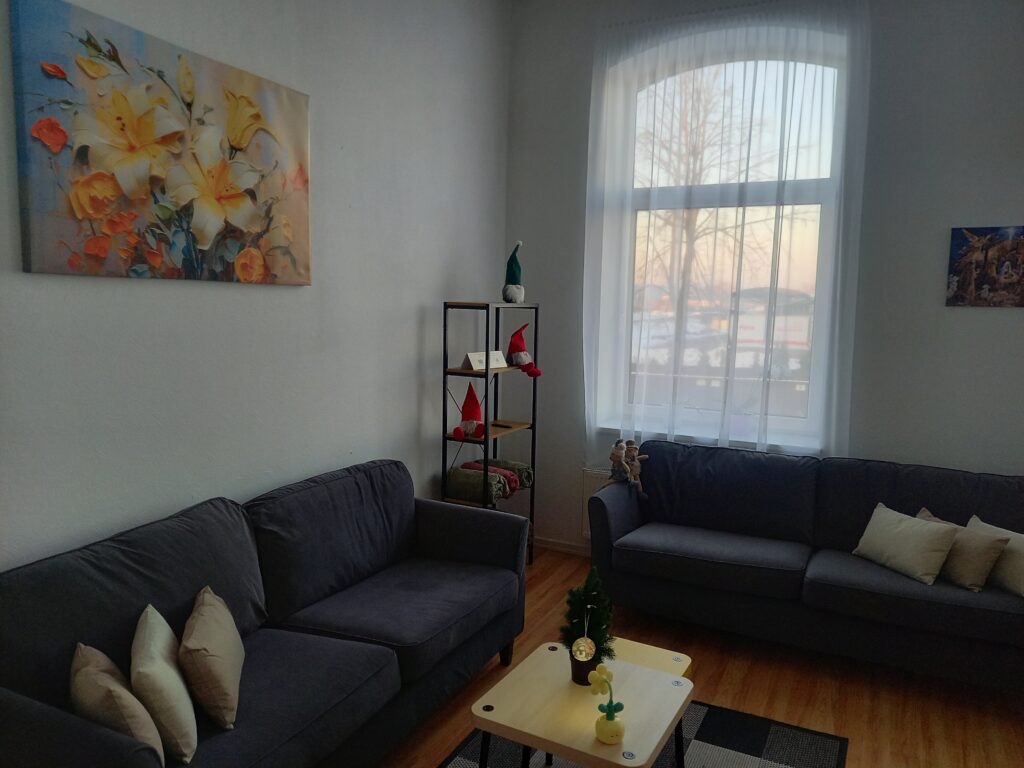 Projekta īstenošanas laikā telpas ir rūpīgi sagatavotas un pielāgotas cilvēkiem ar kognitīviem traucējumiem. Centra vide veidota tā, lai tā būtu viegli uztverama, pārskatāma un droša. Telpu plānojums palīdz klientiem labāk orientēties, savukārt mierīgās krāsas un mājīgais interjers rada komfortablu atmosfēru.