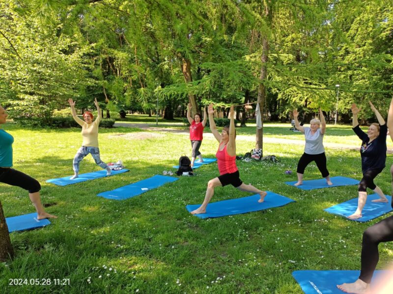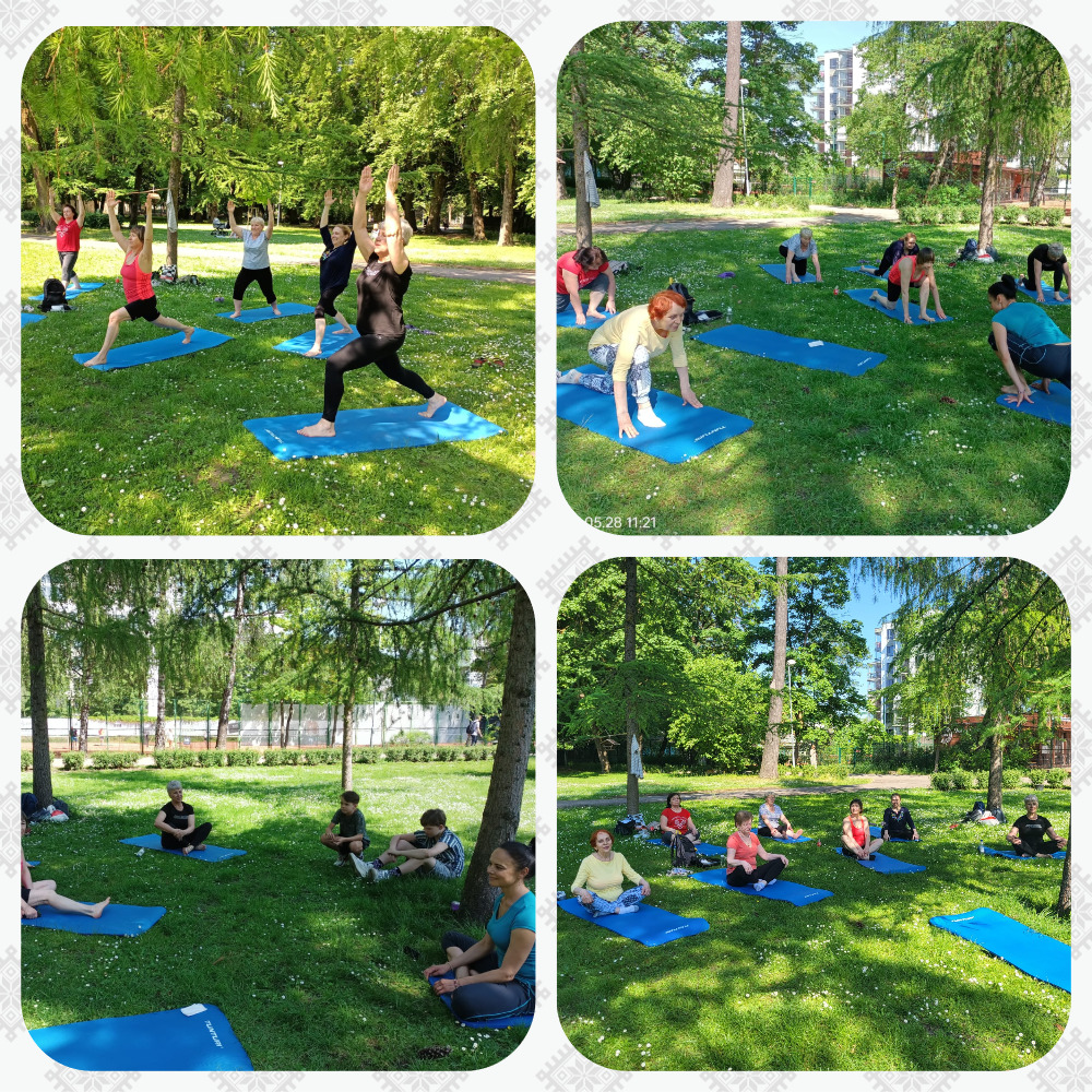 Vasarā jogas nodarbības notiek svaigā gaisā, ja laikapstākļi ir labvēlīgi.